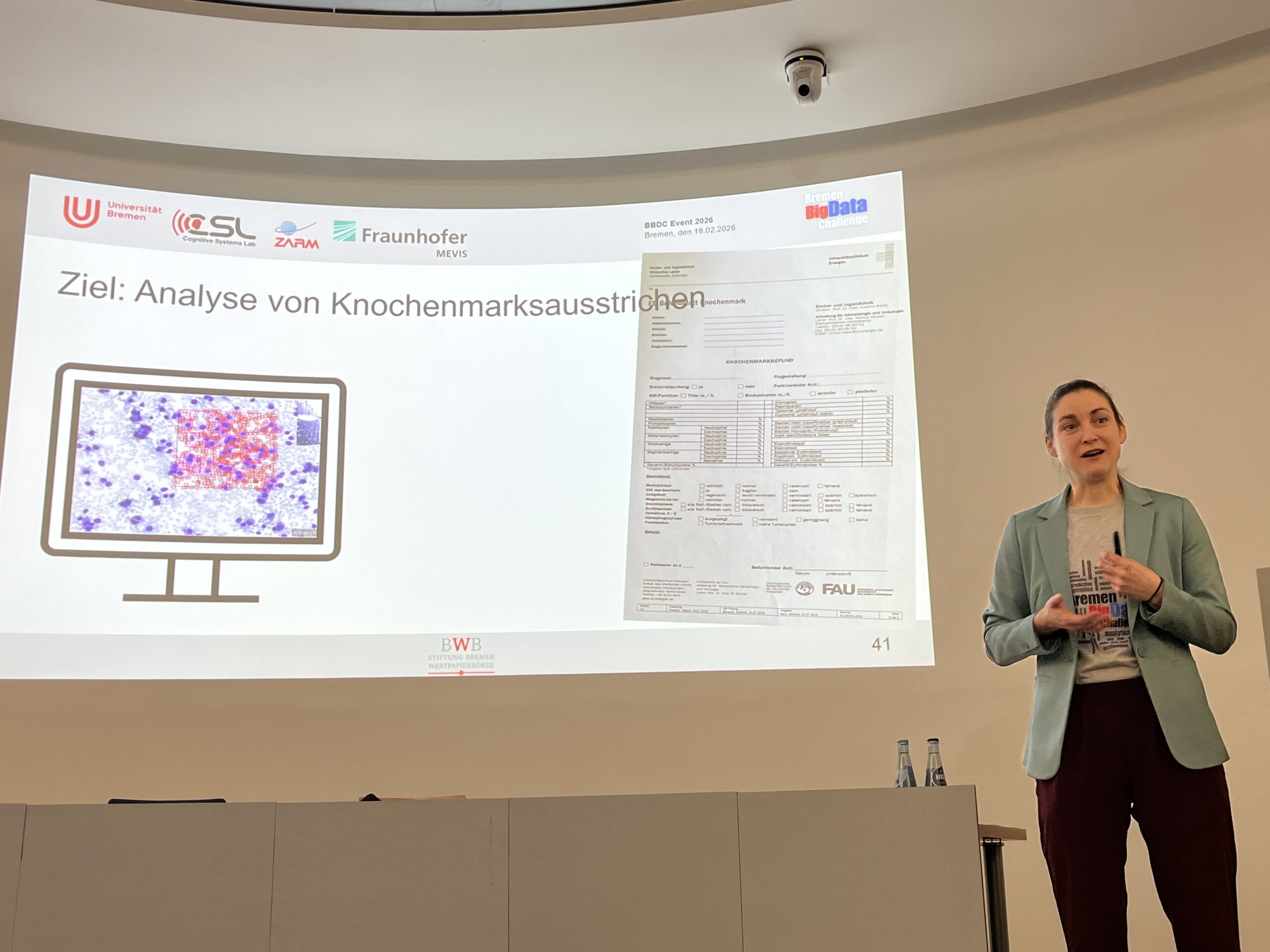 Am Fraunhofer MEVIS entwickeln Forschende, Kliniker:innen und Industriepartner gemeinsam Software-Lösungen, die Fachleuten im Gesundheitswesen helfen, die explodierende Komplexität zu bewältigen. Eine wichtige Rolle spielt dabei die Verarbeitung von medizinischen Daten mithilfe von künstlicher Intelligenz. Im Rahmen der BBDC 2025 wird es deshalb darum gehen eine künstliche Intelligenz (KI) zu trainieren, die Patholog:innen dabei unterstützt Knochenmarksausstriche mittels Automatisierung schneller und objektiver auszuwerten. Ganz konkret spielen diese Analysen bei der Diagnose von Leukämie eine entscheidende Rolle. Wie diese Knochenmarksausstriche aussehen und wie man mit diesen Daten umgeht, ist ein wichtiger Teil beim Training einer KI und der diesjährigen Challenge. Du wirst dabei erforschen, wie eine KI für die Analyse von Knochenmarksaustrichen aussehen kann, wie man sie trainiert, wie gut die resultierenden Prognosen sind und welche Limits es bei der automatischen Analyse von Knochenmarksausstrichen mit KI gibt.